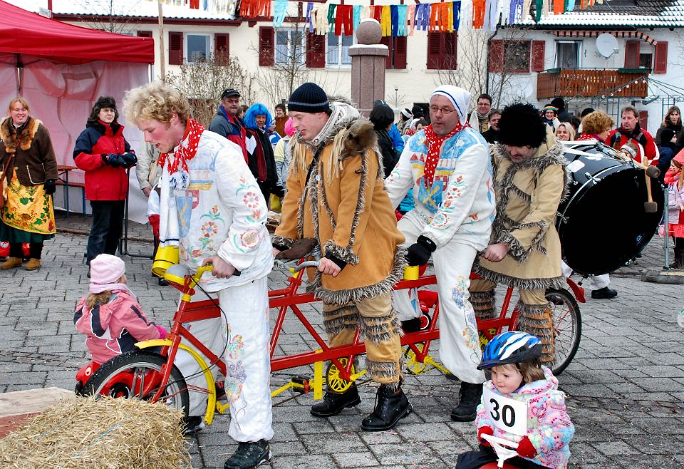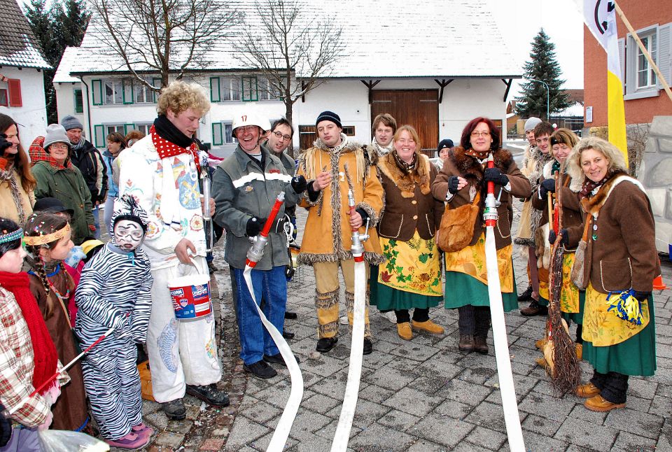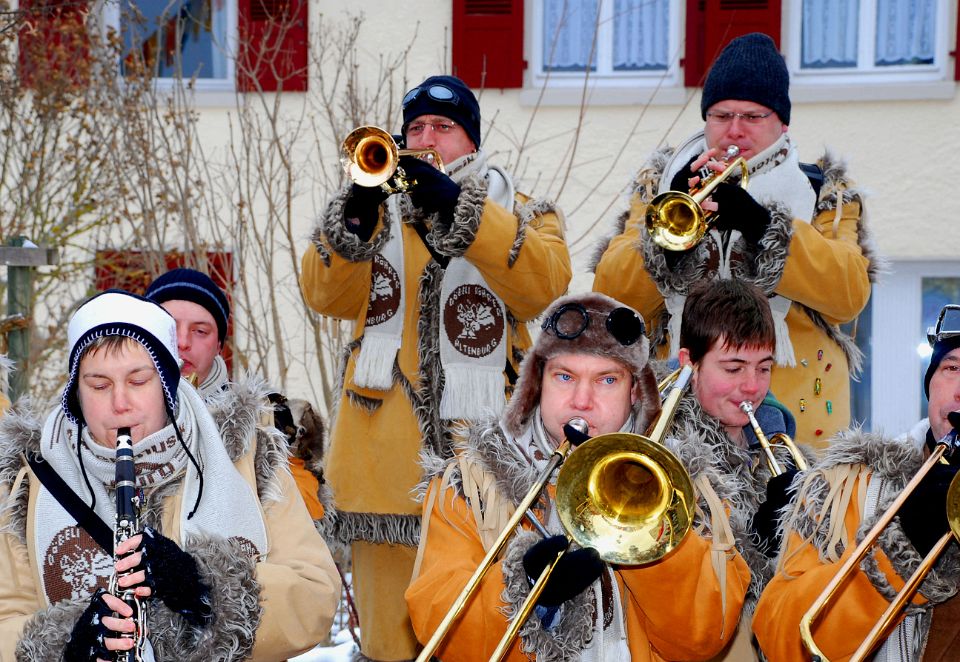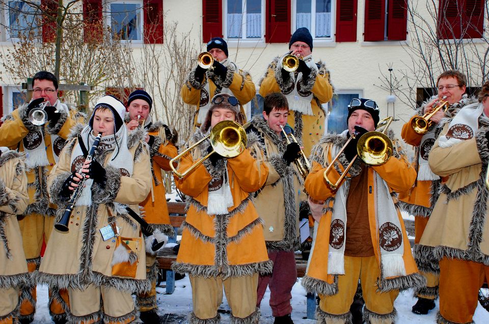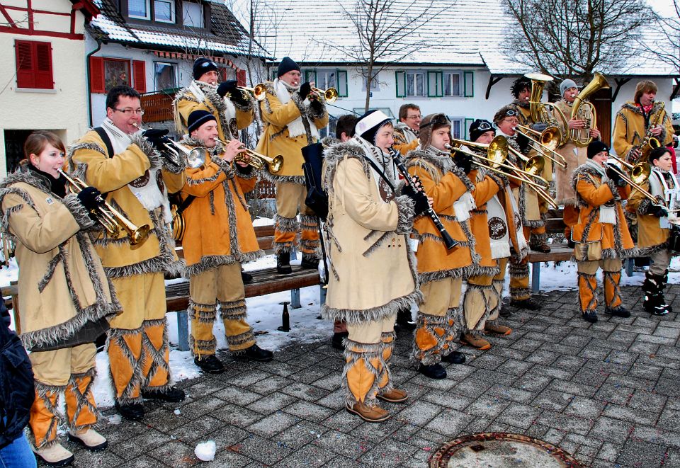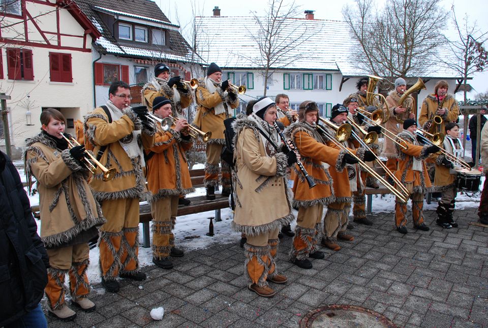 Am Fasnacht Samstag hatten wir volles Programm: Zuerst sorgten wir für die musikalische Begleitung des Bobbycar Rennens. Beim "Schlag den Schnörri" hatte das Guggen Team gegen die "Flying Marys" leider keine Chance. Zusammen mit Rettstej und Läärchä-Hüüler bestritten wir am Abend in Lottstetten ein Monsterkonzert. Kostümiert diesmal nach dem Motto von Kay's Party "Tuntenball im Märchenwald".